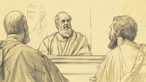 © T Studio, Naklejka premium Spirit and Fellowship: Acts 2 Biblical Illustration with Holy Spirit, Early Church Growth on Beige Background and Copyspace