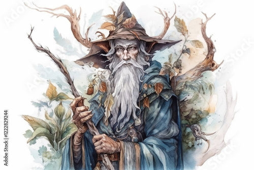 © Evdoha, Fototapeta premium Spirit of the forest. Wood goblin. Skogen. Scandinavian mythology, illustration., watercolor style, Generative AI
