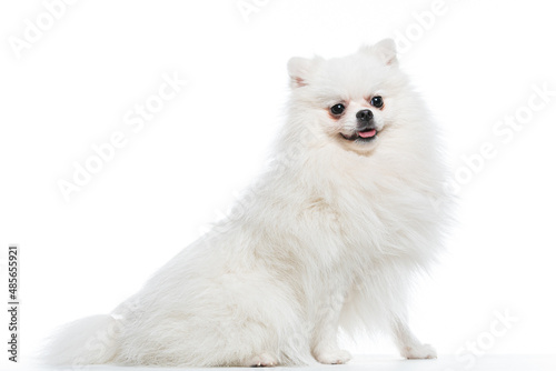 Obraz premium spitz branco em estudio fotográfico em fundo branco