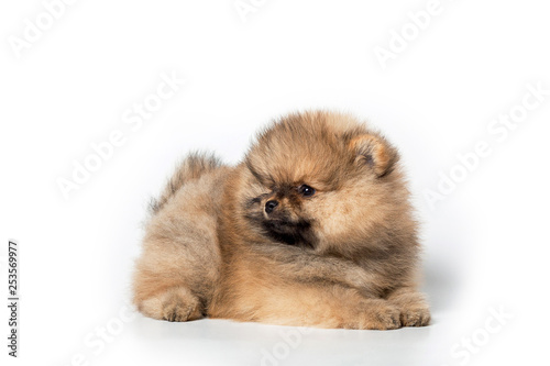 Fototapeta premium Spitz puppy on white background.