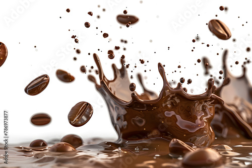 Fototapeta premium Splash of coffee with beans flying through the air on a white background