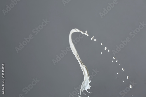 Fototapeta premium Splash of milk on grey background