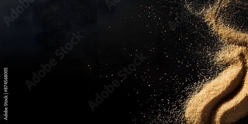 © Oleksandr Sylenko, Obraz premium Splash of sand on a black background. explosion of sand with empty space. dry sand
