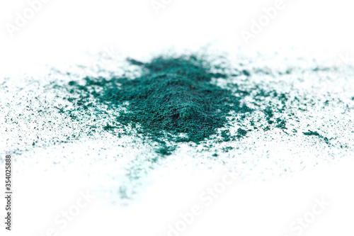 Fototapeta premium Splash of spirulina algae powder isolated on a white background. Superfood concept.