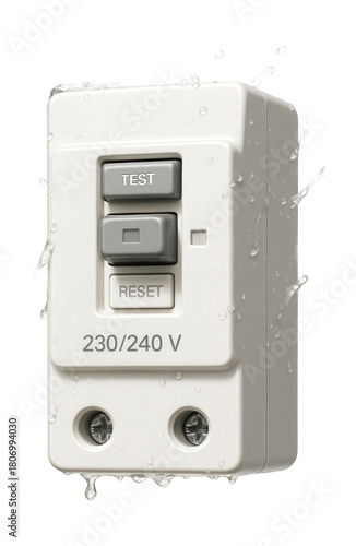 Fototapeta premium Splash-resistant automatic circuit breaker for bathrooms with GFCI for enhanced safety.