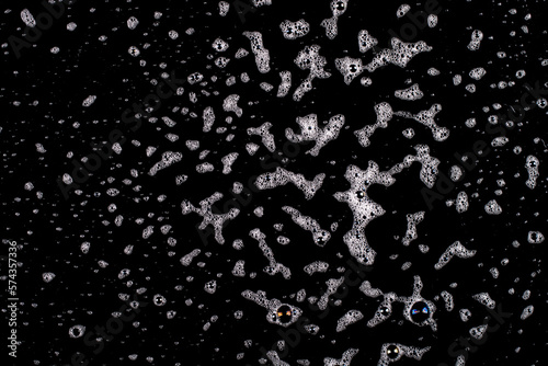 © Yevhenii, Fototapeta premium Splashes of white foam on a black background.