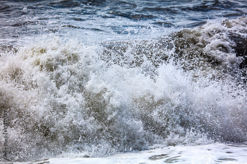 © schankz, Obraz premium Splashing big waves on the seashore.