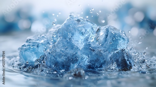 © SamsuAI, Obraz premium Splashing Blue Ice Cubes in Water