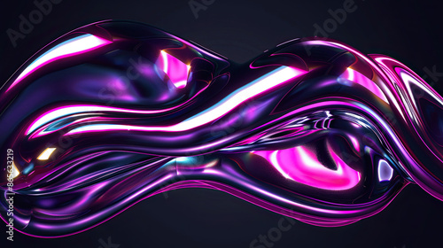 © Mohammad Xte, Fototapeta premium Splashing 3D Chrome Neon Fluid Form, Liquid Metallic Shape, Isolated on Black