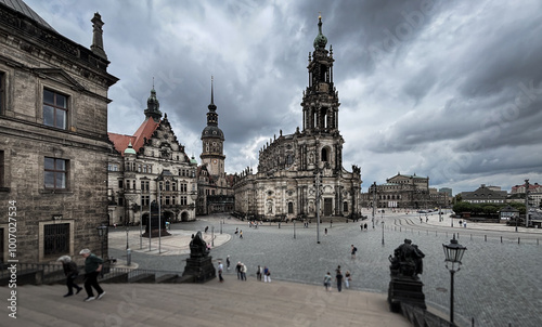 © lightpoet, Obraz premium Splendid historic, ravaged in WWII, city center architecture in Dresden, Germany.