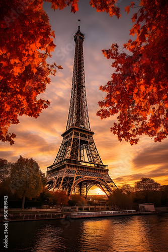 © Lily, Fototapeta premium Splendid Twilight View of the Eiffel Tower Dominating the Picturesque Parisian Cityscape during Autumn