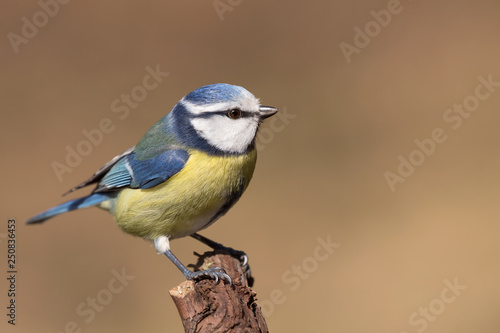 © Manuel, Fototapeta premium Splendido ritratto di una cinciarella nel bosco (Cyanistes caeruleus)