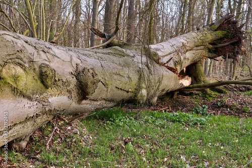 © Joachim Heller, Obraz premium Split Beech Trunk with Early Wood Decay in Forest