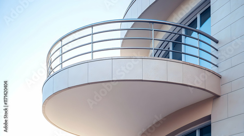 Fototapeta premium Split-level balcony with integrated planter boxes and wooden lattice screens,...
