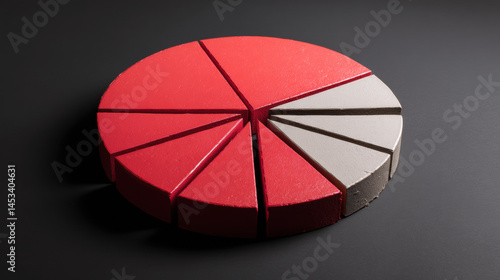 © Wonderful Studio, Obraz premium Split pie chart with missing slice, featuring red and gray sections on dark background