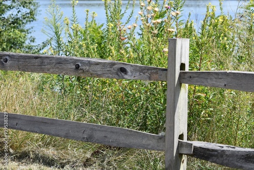 © Kitz Pix, Fototapeta premium split rail fence with summer plants grasses scene