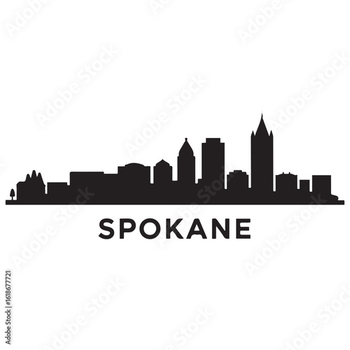 Naklejka premium Spokane, WA skyline horizontal banner. Spokane city. Vector template for your design. Vector black silhouette. with white background