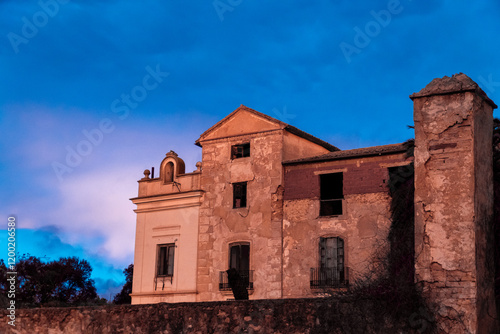 © MiguelAngel, Fototapeta premium Spooky abandoned house at sunset