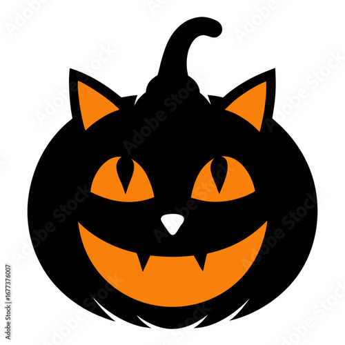 © Hasibul Hasan, Naklejka premium Spooky black cat pumpkin halloween icon
