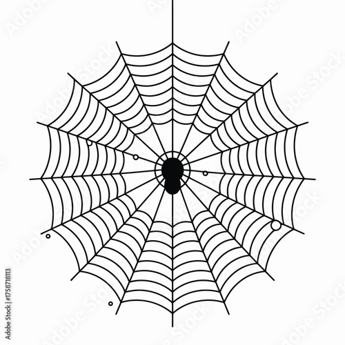 © MdSojib, Fototapeta premium Spooky black spider web with a central spider illustration on white background