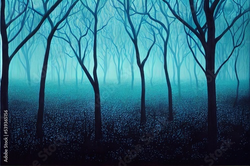 © The 2R Artificiality, Obraz premium Spooky blue forest with dry trees