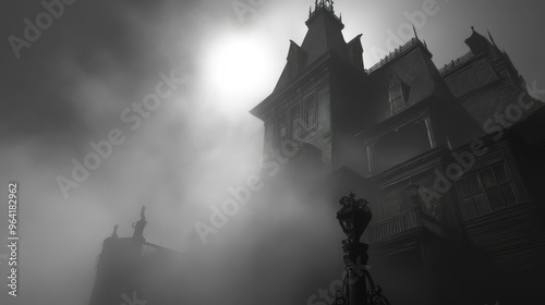 © Hafidhulkarim60, Obraz premium Spooky fog swirling around haunted house