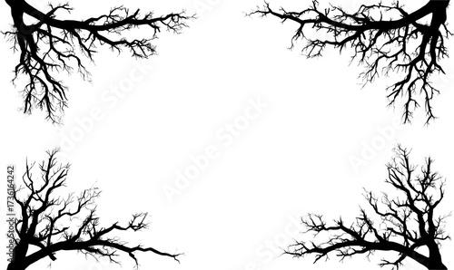 Obraz premium Spooky Forest Clipart Frame with Branches and Decorative Border Isolate on...