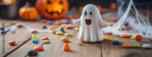 Obraz premium Spooky Ghost Figurine with Halloween Candy