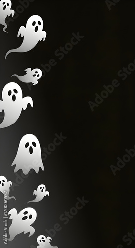 Obraz premium Spooky ghosts float against a dark background, perfect for Halloween party invitations and eerie decorations