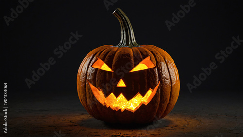 Fototapeta premium Spooky Glowing Jack-O'-Lantern Pumpkin with Carved Face for Halloween Night...