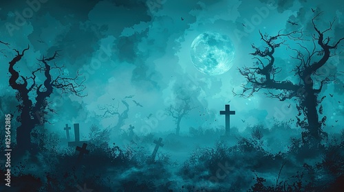 Obraz premium Spooky Graveyard Silhouette Abstract Backdrop