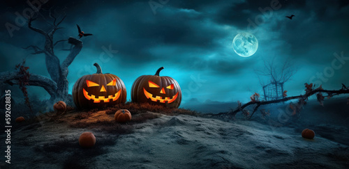 © olegganko, Naklejka premium Spooky Halloween Background. Illustration AI Generative.