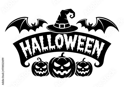 © Abdullah, Obraz premium Spooky Halloween banner with witchs hat bats and jack-o-lanterns