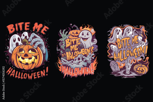 Obraz premium Spooky halloween ghosts and pumpkins zombies