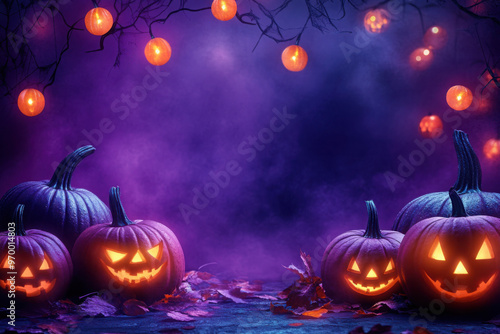 © Imane, Fototapeta premium Spooky halloween illustration, pumpkins castle, dark, cartoon style for kids. High quality photo