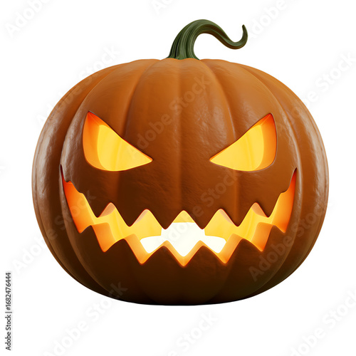 Fototapeta premium Spooky Halloween Jack-o'-lantern Glowing Evil Pumpkin Face for Autumn...