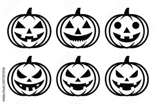 Fototapeta premium Spooky Halloween Jack-o'-Lantern Pumpkin Carvings Six Unique Designs