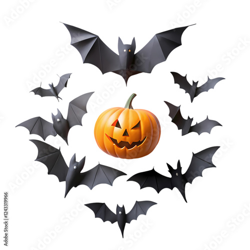 Naklejka premium Spooky halloween jackolantern bats dark night festive october fun art fall on transparent background