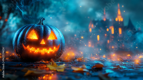 © EnioRBC, Naklejka premium Spooky Halloween Night: Haunted House, Creepy Pumpkins, and Eerie Ghosts for Your Seasonal Projects