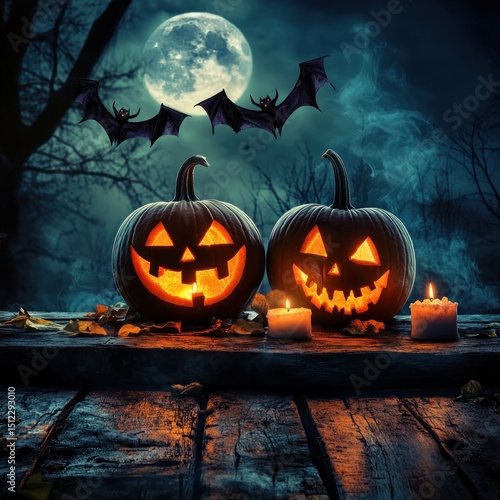 Fototapeta premium Spooky Halloween Night: Jack-o'-lanterns under the Moon