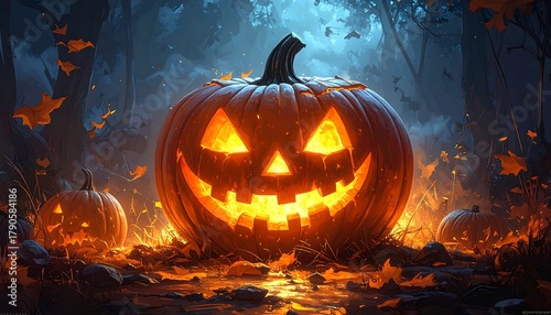 Naklejka premium Spooky Halloween Pumpkin Jack-o-lantern.