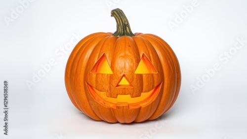 © Chayapus, Fototapeta premium Spooky Halloween Pumpkin with a Friendly Face and Glowing Light