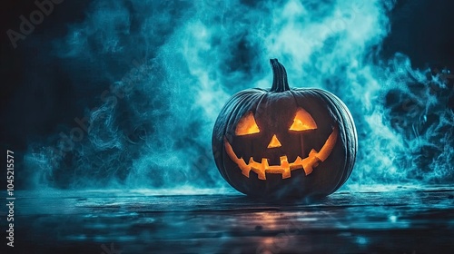 © arthit, Naklejka premium Spooky Halloween Pumpkin with Eerie Glow