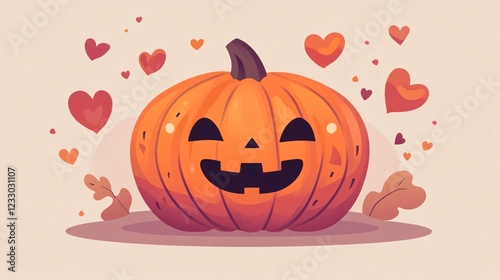 Fototapeta premium Spooky Halloween Pumpkin with Heart Shape Face Decoration for Festive...