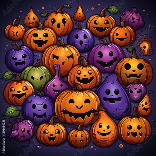© Nastassia, Obraz premium Spooky Halloween Set Featuring Haunted Houses and Creepy Trees