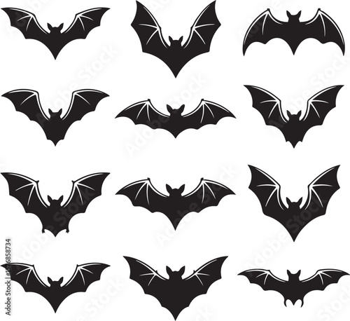 © vector design, Naklejka premium Spooky Halloween SilhouetteHaunted House Halloween VectorFlying Witch on Broom SilhouetteHalloween Pumpkin SilhouetteCreepy Graveyard Halloween Scene