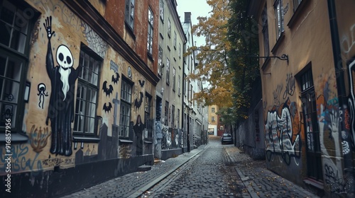 © Ernst, Fototapeta premium Spooky Halloween Street Art: A Chilling Display