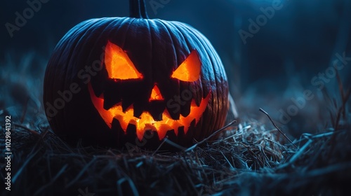 Fototapeta premium Spooky Jack-o'-Lantern Glowing in the Dark