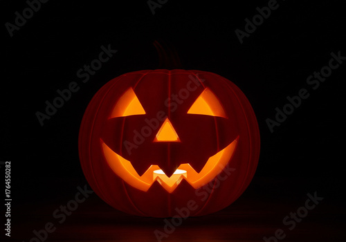 © lonta 45, Fototapeta premium Spooky Jack-O'-Lantern with Candle Light on a Dark Background