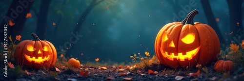 © Phennapha, Fototapeta premium Spooky Pumpkin Illustration with Creative Typography, pumpkin, halloween, design